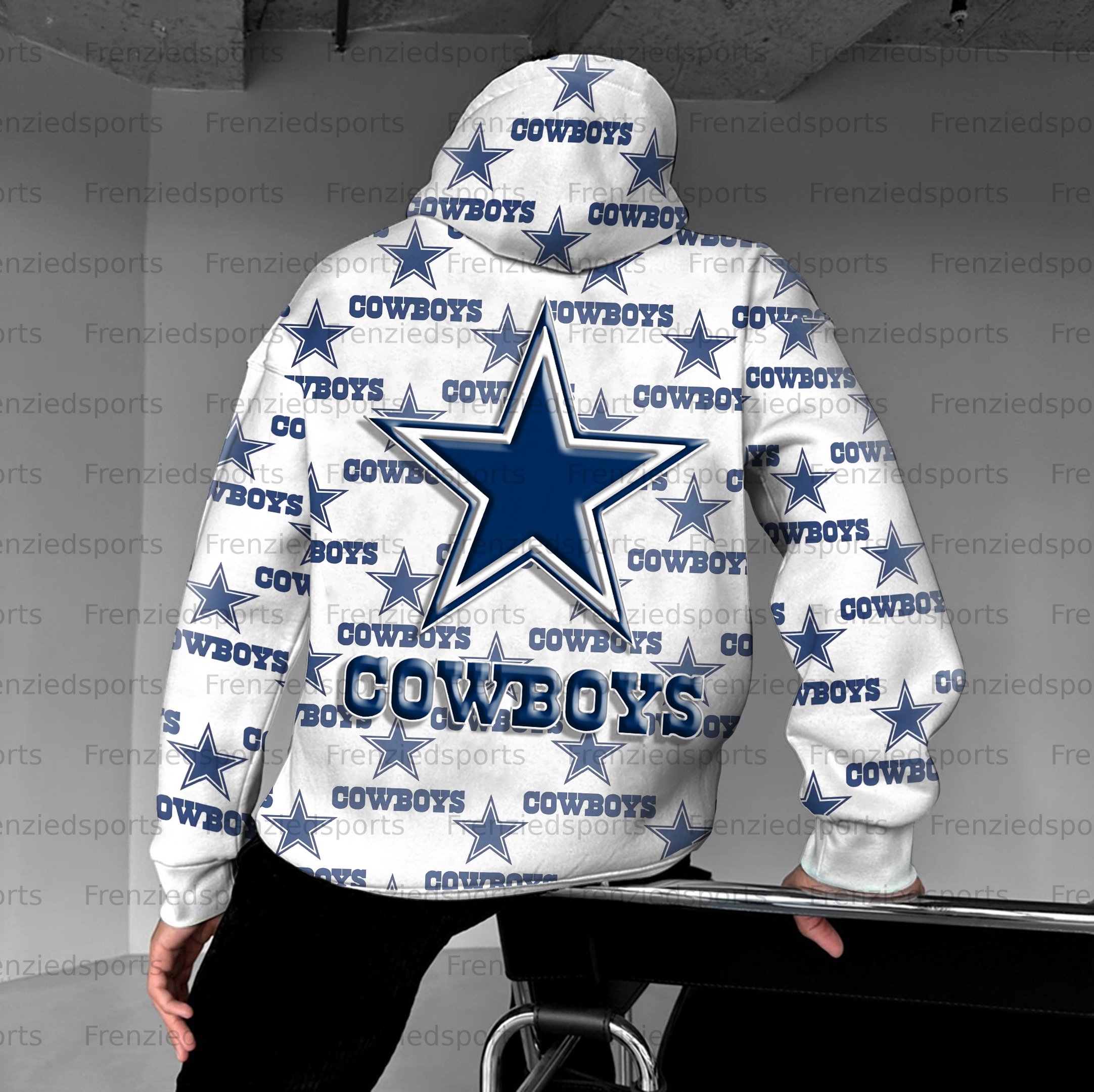 Dallas Cowboys UNISEX RUGBY CHAMPIONSHIP TEAM LOGO PRINT OVERSIZED CASUAL HOODIE