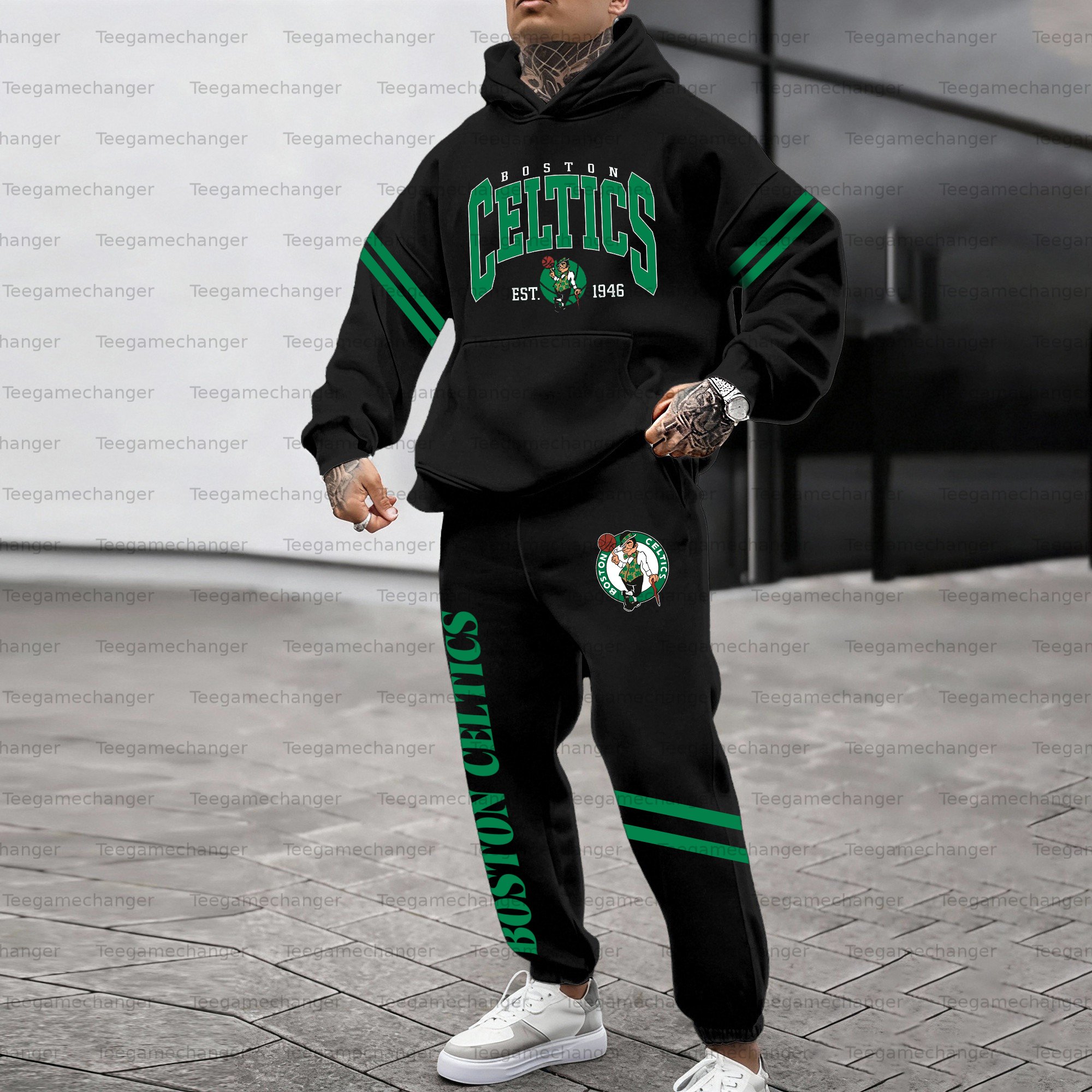 (Fleece-Lined Hoodie) ”Boston-Celtics“3D Printed Pullover Hoodie And Sweatpant 2pcs Tracksuits