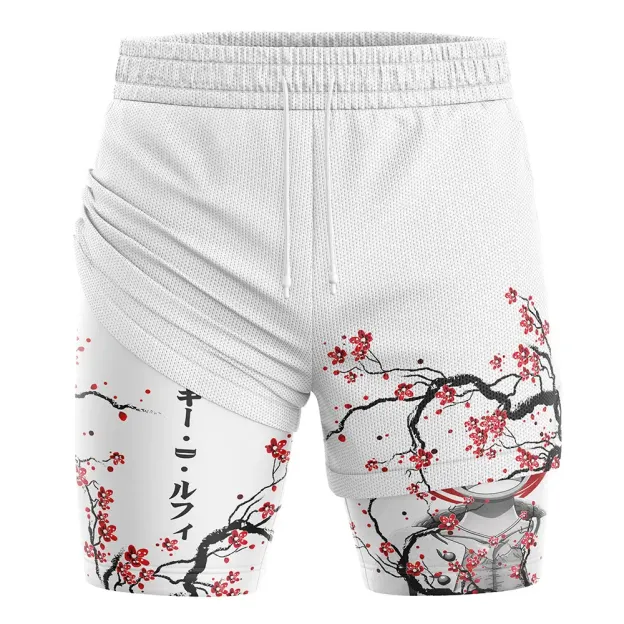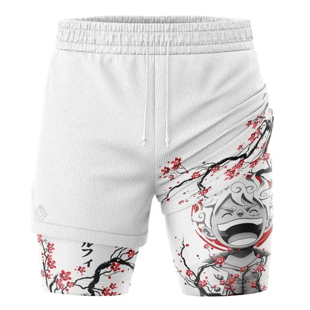 Luffy Gear 5 Cherry Blossom One Piece 2-in-1 Performance Shorts